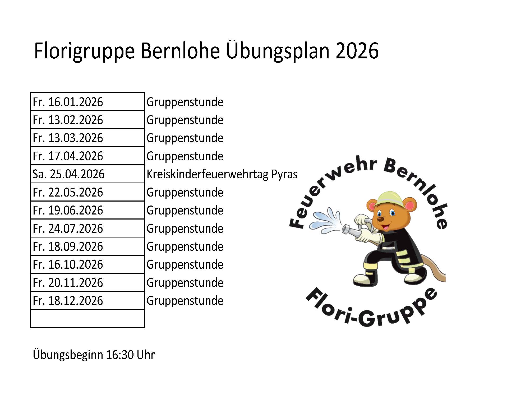 Die Florigruppe trifft sich nach Übungsplan Freitag um 16.30 Uhr. Mitmachen kann jedes Kind ab 6 Jahren. In der Florigruppe wird noch keine Feuerwehrtechnische Ausbildung im Sinne der Jugendfeuerwehr betrieben. Brandschutzerziehung, Feuerwehrtechnik und Erste Hilfe wird den Kindern spielerisch näher gebracht.