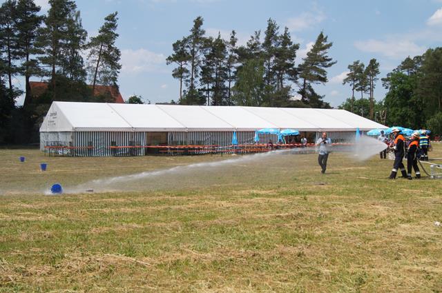 16 Frauen und Männer FFW Bernlohe stellten sich bei großer Hitze am Samstag den 06.06.2015 anlässlich der 800 Jahrfeier der Leistungsprüfung: Die Gruppe im Löscheinsatz.