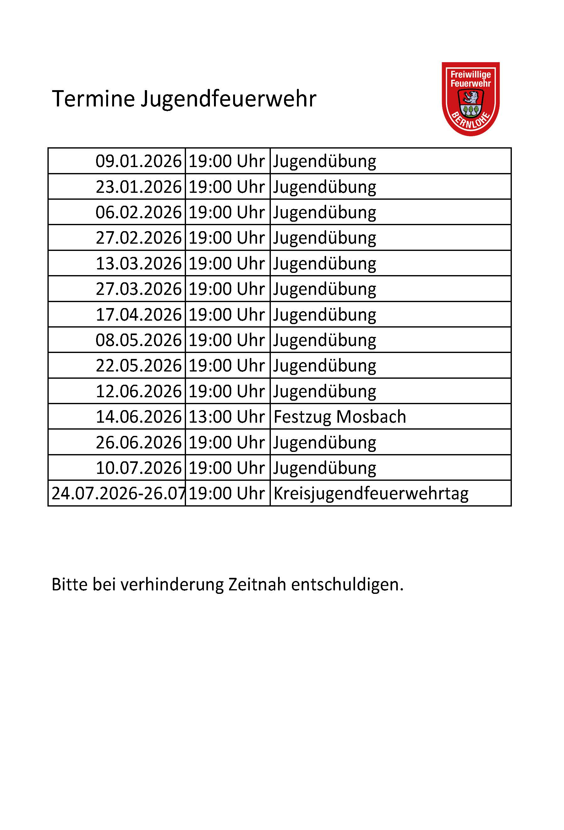 Jugendfeuerwehr Die Jugendfeuerwehr Bernlohe trifft sich jeden Freitag um 18:00 Uhr am Gerätehaus in Bernlohe. Mitmachen kann jeder ab 12 Jahren. Feuerwehrtechnische Ausbildung steht in erster Linie auf dem Stundenplan. Doch auch der Spaß kommt nicht zu kurz.